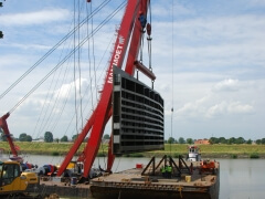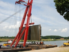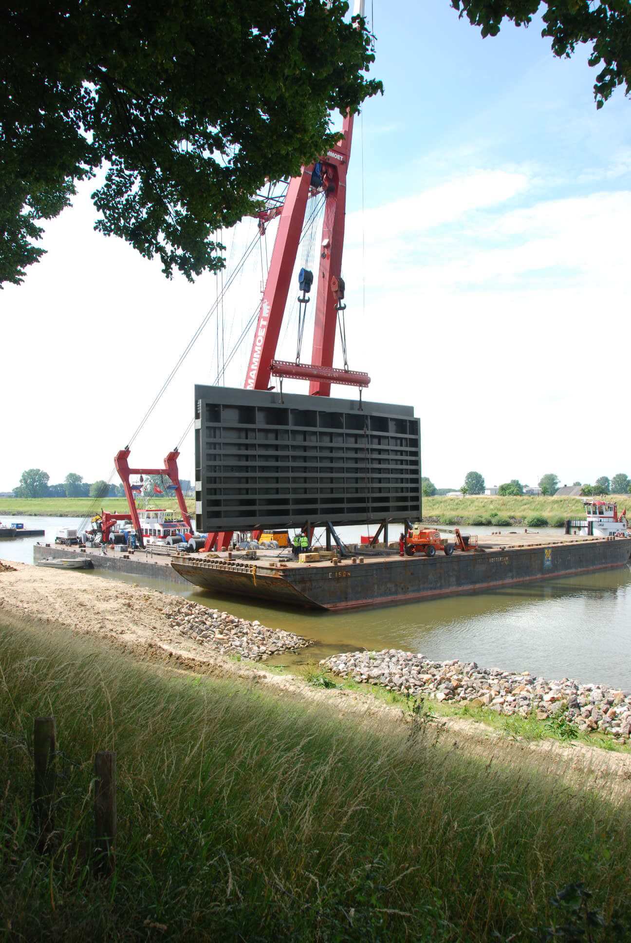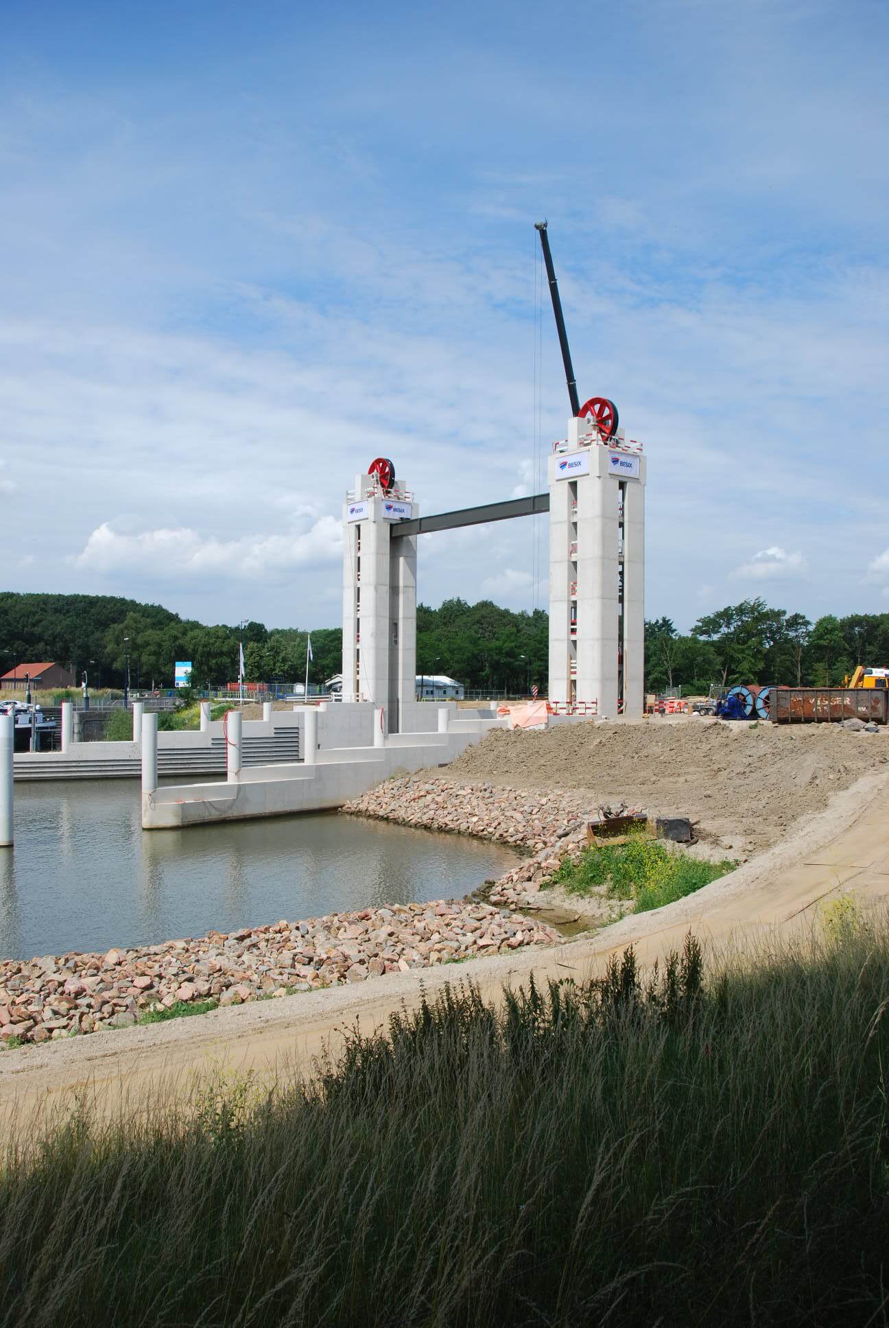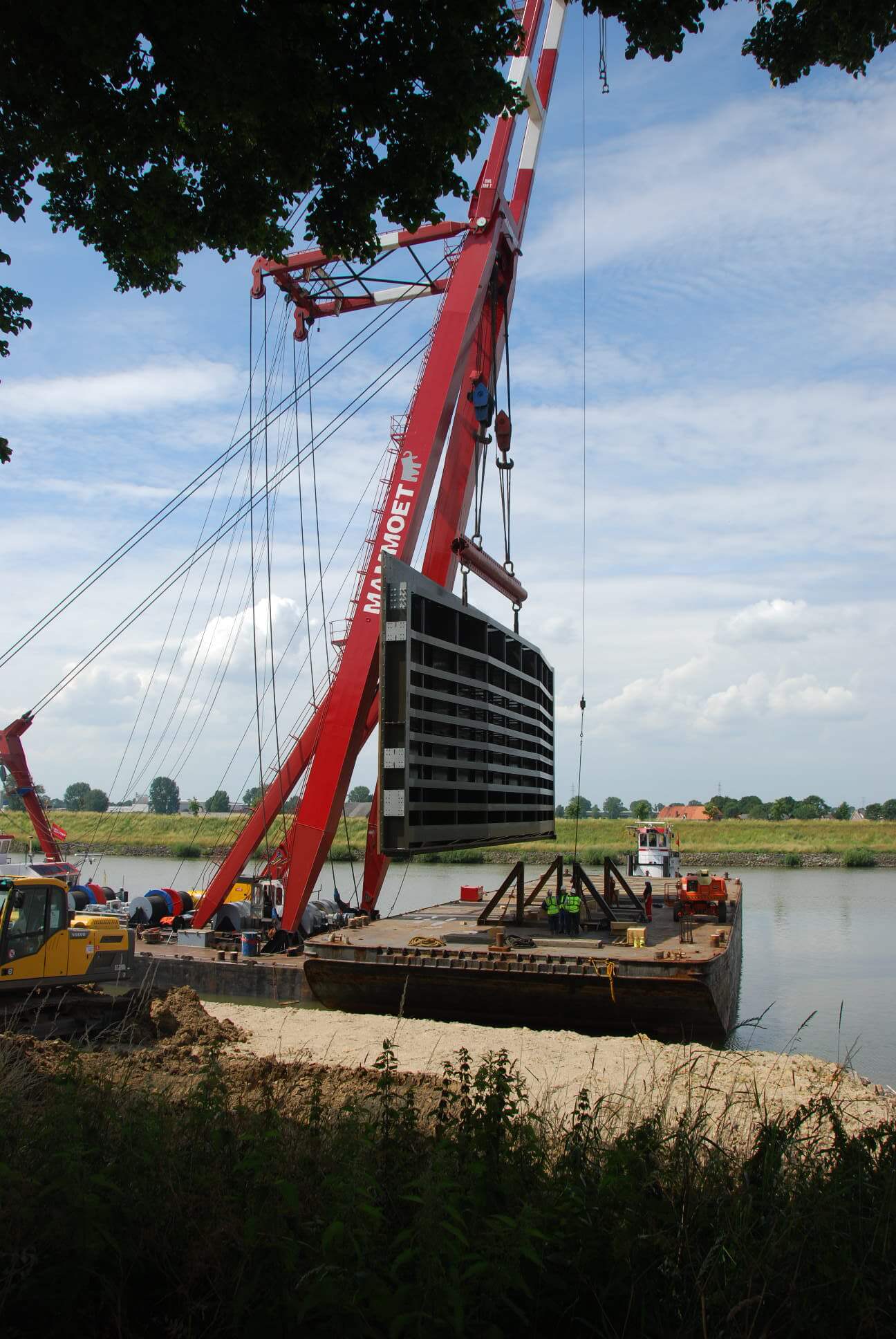 Op 5 Juli 2012 is de hefdeur onder grote publieke belangstelling geplaatst. De 160 ton zware stalen hefdeur kwam na een reis van twee weken over het water vanuit Gent (B) aan in Heumen. Het plaatsen was een complex precisiewerk, maar verliep voorspoedig.
