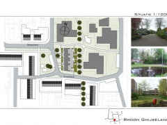 Voor een prijsvraag in de wijk Ghijseland in Rhoon hebben we op de plek van een voormalige kleuterschool een ontwerp gemaakt voor grondgebonden levensloopbestendige woningen. De locatie maakt deel uit van het centrale gebied van de wijk, welke bestaat uit een grote collectieve tuin met daarin vier appartementengebouwen, een gemeenschapsruimte en een voormalige kleuterschool. De aanwezige bebouwing kenmerkt zich door een alzijdige oriëntatie. De appartementen in het middengebied zijn eigendom van Service Wooncentrum Rhoon en bestaan uit kleine twee-/driekamer appartementen voor ouderen. Alle omringende bebouwing rond het centrale gebied bestaat uit eengezinswoningen aan parkeerhoven.